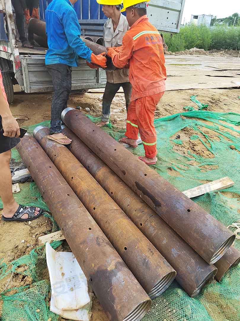 3、将Ф219×12.0钢管加工螺纹,可以互相连接;