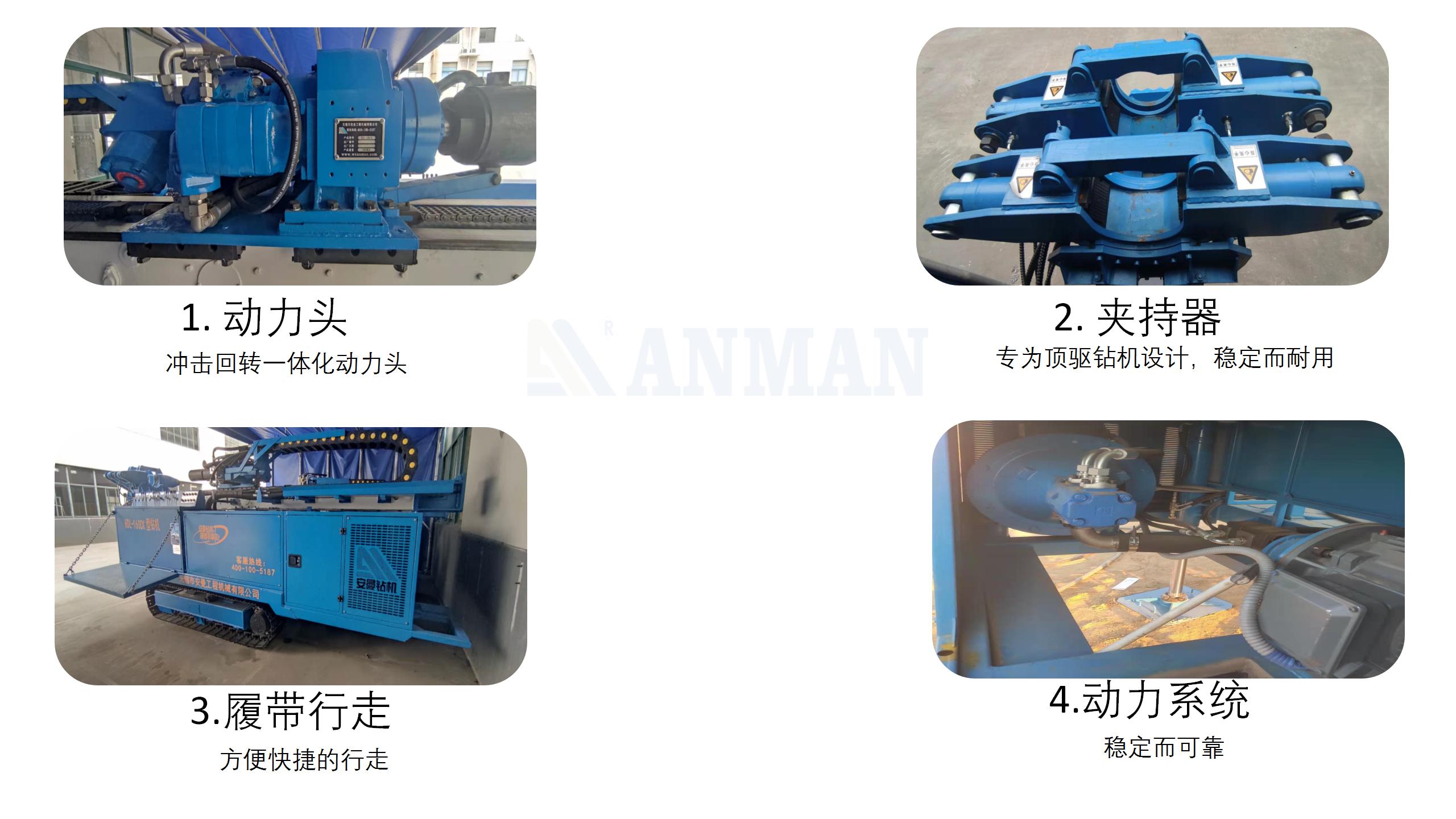 1、动力头带有高频率顶部冲击功能,可以不用气动冲击器即可实现冲击钻进。