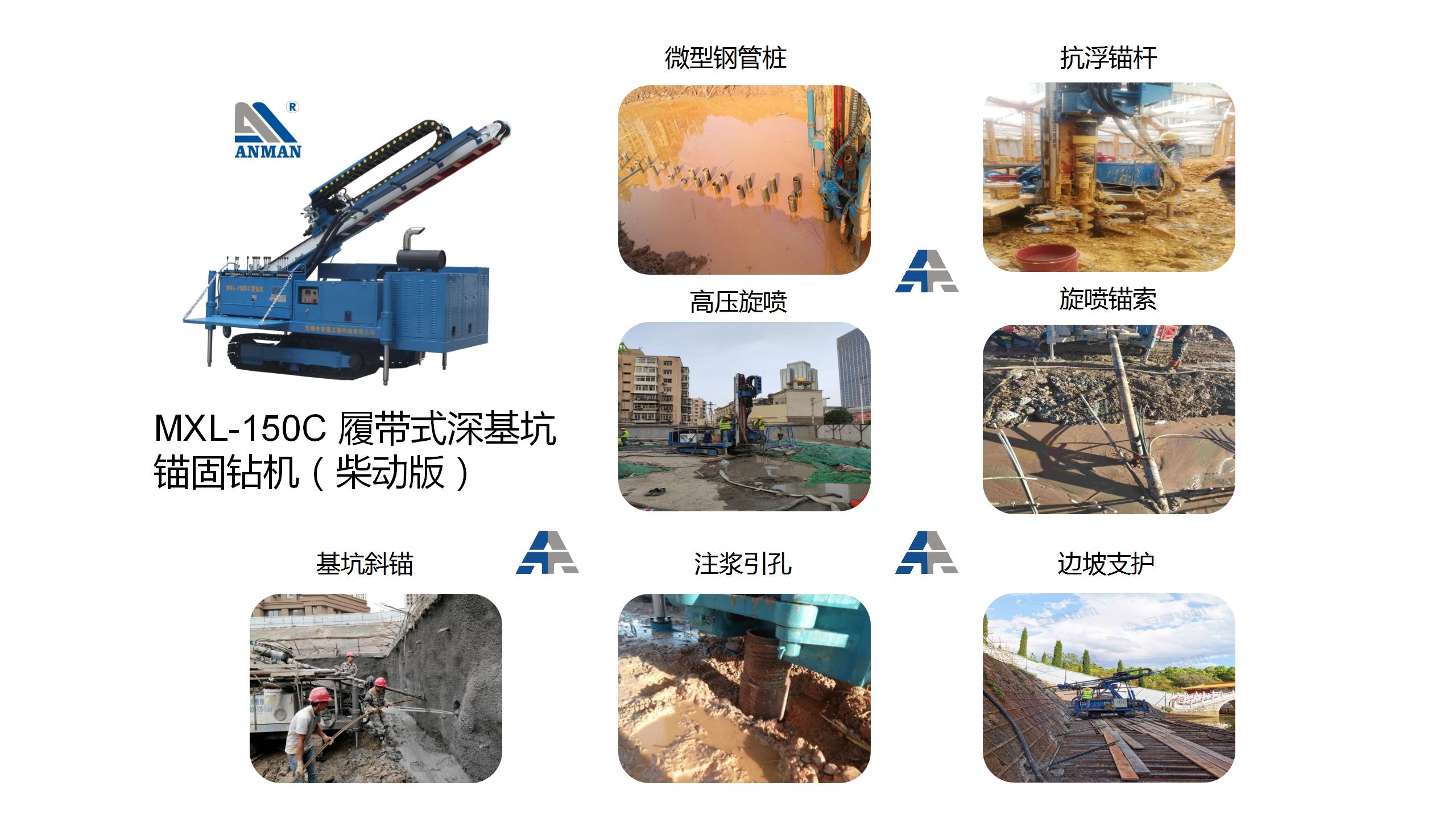 MXL-150C型履带式深基坑锚固钻机是我司根据地铁、高层建筑、机场、地源热泵及其它深基坑进行锚固、旋喷、降水所开发的高效钻机。